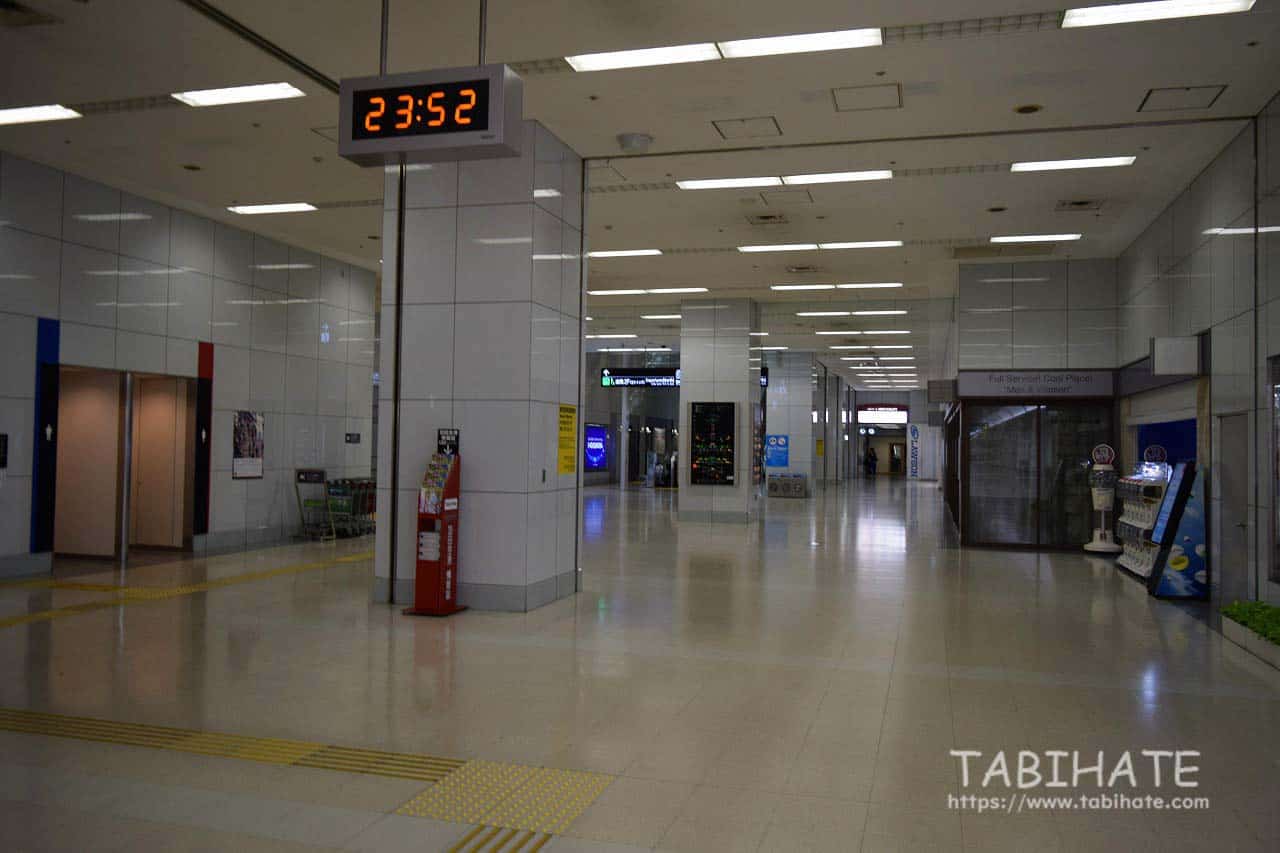 コンビニくらいは開いているだろうと考えていましたが、結果は全滅でした。まぁ、この時間だと到着便もないので閉まっているのは当たり前ですよね。