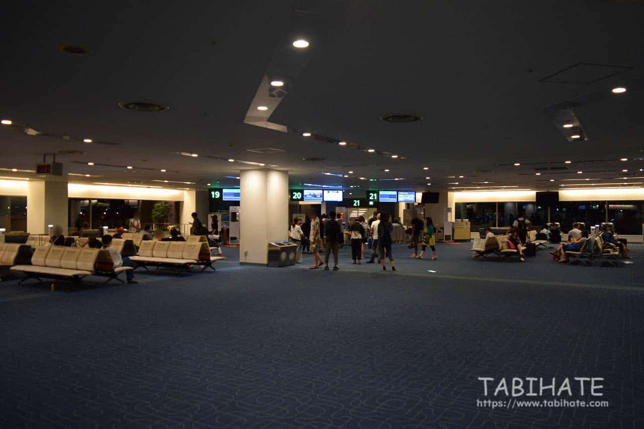 ここ以外の場所は24時で閉鎖されるため、他の場所で待とうとすると警備員の方にスカイマークカウンターまで移動するように声をかけられます。